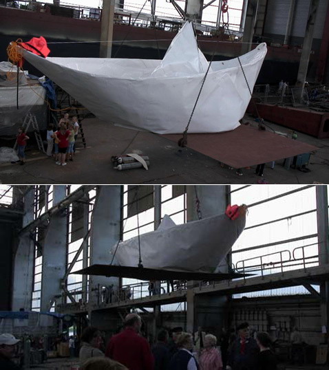 Сначала он нарисовал схему — последовательность действий при складывании кораблика. Затем нашёл несколько человек, которые помогли ему собрать эту незамысловатую, но весьма громоздкую конструкцию.